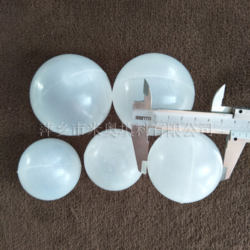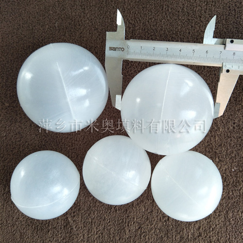 萍鄉米奧填料除生產直徑25mm 38mm 50mm常規尺寸塑料空心球外,另還生產55mm/60mm/65mm/70mm/75mm/80mm/90mm/100mm/120mm/250mm大型塑料空心球,及5mm/6mm/8mm/10mm/12mm/15mm/16mm/19mm/20mm小型塑料空心球;15.9mm/15.75mm/19mm/20mm/25mm(25.2mm,25.3mm,25.4mm,25.5mm,25.9mm)/28.5mm/28.8mm/35(35.2mm,35.56mm)等拋光空心球。可定做聚丙烯(pp)、聚乙烯(pe)材質,顏色可按客戶要求定做。歡迎您來電咨詢!