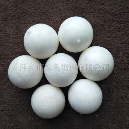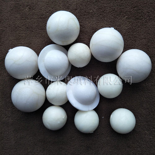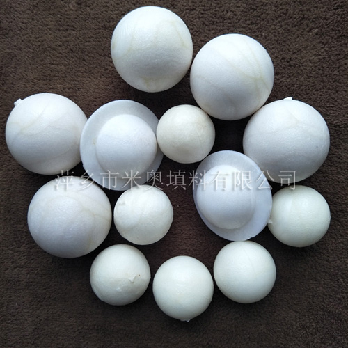聚丙烯發泡球以聚丙烯為原料,經發泡、收縮成型的圓形塑料填料,分為帶邊液面覆蓋球、不帶邊液面覆蓋球和六角錐體覆蓋球三種類型。帶邊液面覆蓋球具有重心穩定,邊與邊重疊,覆蓋效果好;六角錐體覆蓋球不僅重心穩定,覆蓋率高,除霧效果更好;再是圓形不帶邊液面覆蓋球。液面覆蓋球發泡球主要作用可抑制酸霧揮發,保護操作人員健康,減少大氣污染和空氣對水質的污染,有效提高凝結水質量,有利于發電機組的安全運行。帶邊液面覆蓋球廣泛應用為各種臥式酸貯槽、電力系統濃鹽酸及凝結水箱的密封材料。