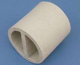 陶(tao)瓷一(yi)字(zi)環(huan)是基于(yu)(yu)增加(jia)填料(liao)的(de)比表(biao)面(mian)以強化傳(chuan)質效率的(de)想法之(zhi)上而開發(fa)出來的(de),其結構(gou)是在拉西環(huan)中增設了(le)一(yi)字(zi)隔板。一(yi)般來講,陶(tao)瓷一(yi)字(zi)環(huan)填料(liao)由于(yu)(yu)尺寸(cun)較大,僅適用于(yu)(yu)整(zheng)齊堆砌,目前一(yi)般只作為亂堆填料(liao)的(de)塔底支(zhi)(zhi)撐(cheng)分布層用。Φ80-200mm規格(ge)的(de)十字(zi)隔板環(huan)可(ke)作支(zhi)(zhi)承材料(liao),空隙(xi)率大于(yu)(yu)60%,個數為整(zheng)聚數。