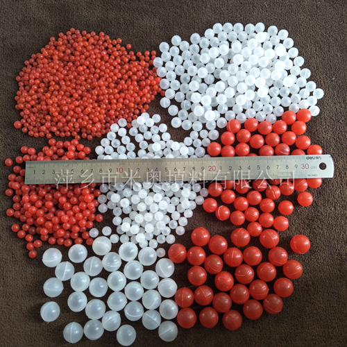 萍鄉米奧填料除生產直徑25mm 38mm 50mm常規尺寸塑料空心球外,另還生產55mm/60mm/65mm/70mm/75mm/80mm/90mm/100mm/120mm/250mm大型塑料空心球,及5mm/6mm/8mm/10mm/12mm/15mm/16mm/19mm/20mm小型塑料空心球;15.9mm/15.75mm/19mm/20mm/25mm(25.2mm,25.3mm,25.4mm,25.5mm,25.9mm)/28.5mm/28.8mm/35(35.2mm,35.56mm)等拋光空心球。可定做聚丙烯(pp)、聚乙烯(pe)材質,顏色可按客戶要求定做。歡迎您來電咨詢!